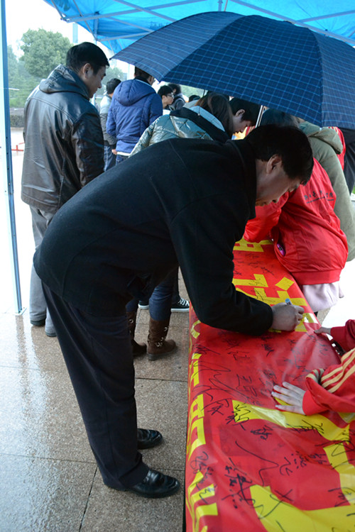 今年是毛主席题词“向雷锋同志学习”49周年,为大力弘扬雷锋精神和”奉献、友爱、互助、进步”的志愿者精神。3月5日,由团委主办的雷锋精神签名活动在图书馆前广场顺利举行。学院领导和广大学生伴随着《学习雷锋好榜样》的歌声,纷纷在印有“将雷锋精神进行到底”的横幅上签字。学院党委副书记洪骏在现场鼓励我院学子要学习雷锋精神,争做四有青年。大雨也挡不住广大学生积极传承雷锋精神的热情,在短短两个小时里,就有近千个签名,同学们的热情传遍整个校园,感染更多的学生积极参与到雷锋日的活动中。